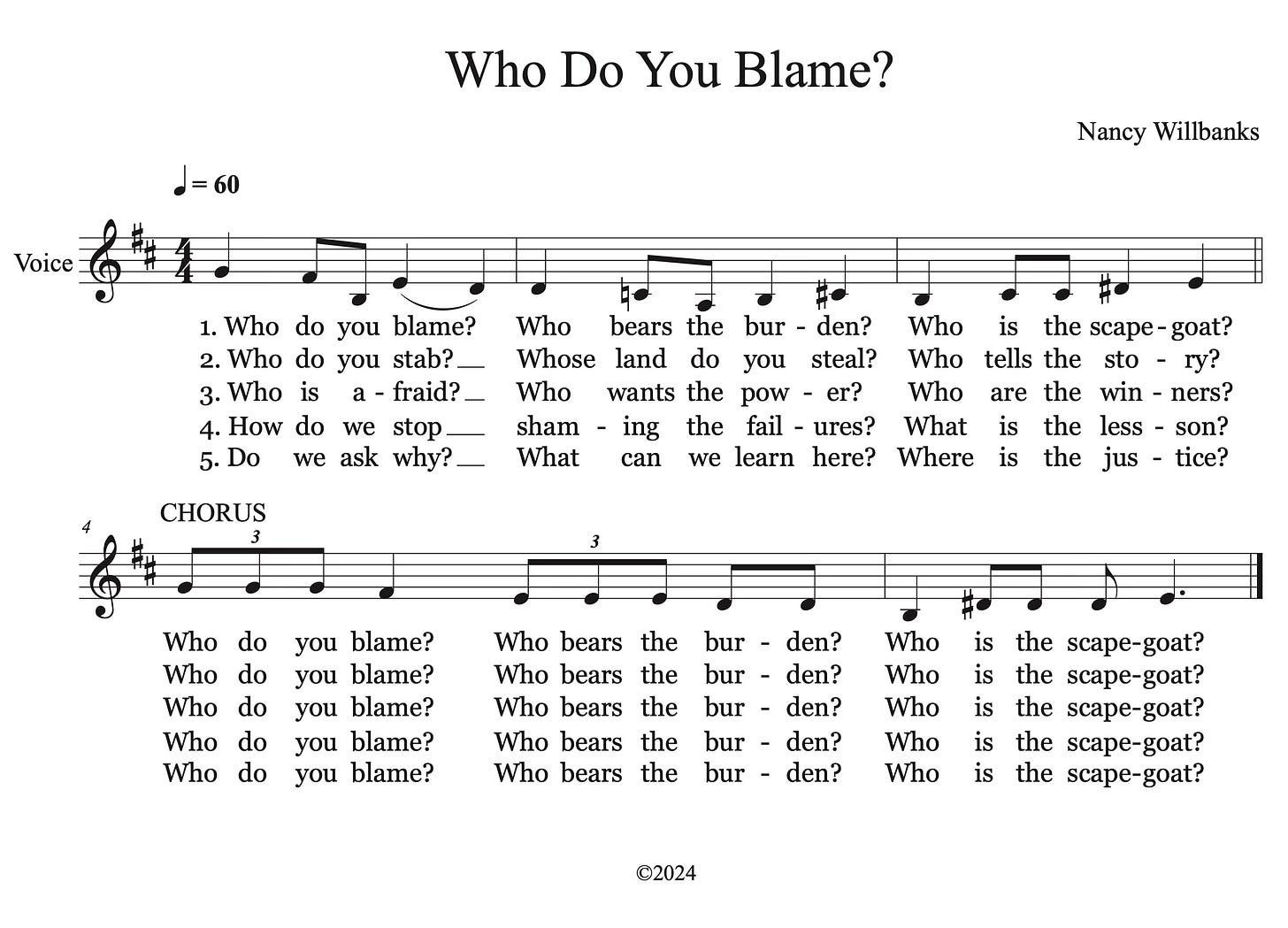 In the meantime, a song was percolating in the back of my mind, and finally came forth. To give you some context for some of the verses, in the news articles about the fatal stabbing of five women and a security guard and the wounding of a dozen more women in Sydney, Australia, the assailant’s father blamed his son’s mental health and desperation about wanting a girlfriend as the reason for his rampage. The wars in both Ukraine and Gaza are, at least in part, about a land grab. In all of the news you can hear a much different perspective depending on who is telling the story.